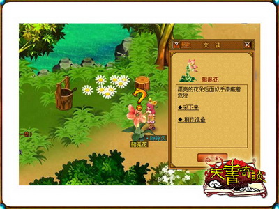 4. 通过新月村内(14,6)的传送点来到北影月森林,貂涎花就在你的面前,与它对话选择采下来便会与BOSS闪电貂发生战斗,BOSSs速度很快,主要技能为撕咬和三倍速冲击,均为物理技能可以使用八荒六合减少主要队员受到的伤害。打败BOSS后再次点击貂涎花选择采花即可。(此动作只需队长完成即可,队员无需离队采花,之后两个BOSS也一样)