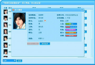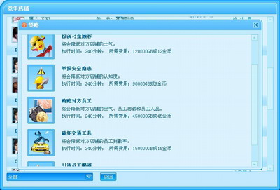 使用上面5点成功基本上,对方的店就会被拆掉。而成功率的高低是有策划部成员等级高低来决定的,要是一个能力值、忠诚值、经验值都是全满的5级策划员,几乎百战百胜。