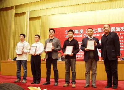 在荣获金翎奖的喜悦还未褪去时,一年一度的中国游戏行业年度峰会——2009中国游戏行业年会,于2009年12月1日下午在北京人民大会堂召开。此年会是在中央**多个有关部门指导下举办的游戏行业盛会,是涵盖网络游戏、网页游戏、手机游戏、大型游戏机、掌上游戏机、家用游戏机、PC单机游戏以及动漫卡通、销售渠道、产品运营等游戏相关产业的一个完整游戏产业链的行业年度标志性盛会,又称为产业“金手指奖”;也是业内人士沟通和交流的极好平台。苏州游刃科技有限公司于此峰会中再获殊荣,被中国游戏行业年会评为“2009年度新秀企业”!游刃科技迅速发展为整个网页游戏行业带来一股新的活力。(图左起第三位游刃科技CEO)