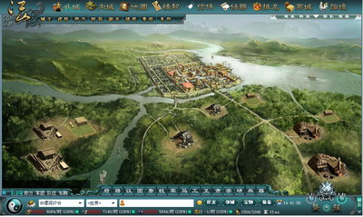 《江山》中的江南一派取材自五胡乱华后南迁的晋朝,所以,建筑风格上无处不显汉人之风。青瓦,红漆,白墙……我们可以看到庄严肃穆的官邸,雍容华丽的皇宫,绿意环绕的民宅。江南的建筑总会很自然的与周围的环境融为一体,桃枝,荷叶,芦苇,石桥点缀其间,形成一幅美轮美奂,细腻柔和,生机盎然的历史画卷。江南的科技与文化较其他两派具有较高的优势,后期高级兵种,比如凤凰弓手,三弓床弩,铁甲井栏这样的远程与器械兵种较为强大。