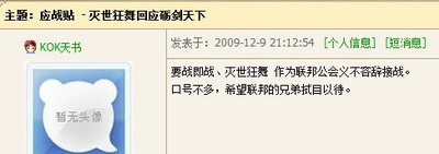 12月9日20:49,魔晶幻想官网论坛内出现了砺剑公会会长,砺剑v天痕发出的一封内测邀战贴,称为了避免再次出现帝国阵营内战的局面,正式宣布向以灭世狂舞(KOK)为代表的联邦阵营宣战,KOK会长天书随后在论坛发帖宣布迎战,激烈的阵营战火一触即发……
