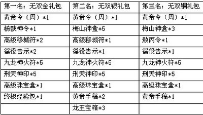新服玩家冲级赛:截止至规定时间,排名前三的玩家获得无双礼包