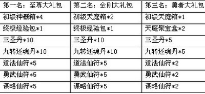 新服神仙冲级赛:截止至规定时间,排名前三的神仙获得至尊装备套装