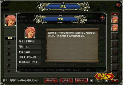 《英雄世界》首创探索系统,一改策略游戏建造建筑、招兵打仗的单调模式,大大丰富了游戏内容,增加了游戏的趣味性和可玩性。