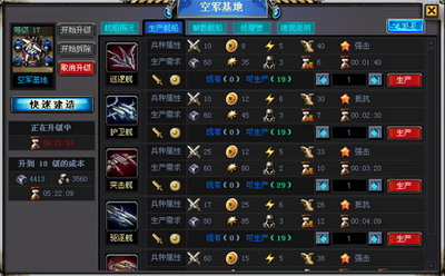 3.空军生产:需要先研究科技建设空军基地,空军基地建筑完成后即可生产空军;