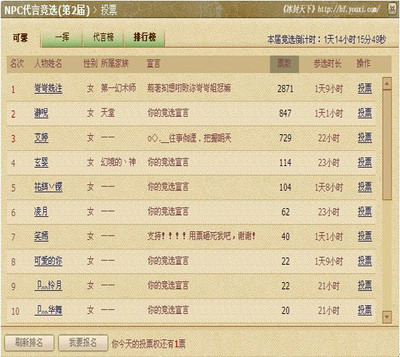 游戏网《冰封天下》特别举办了一个活动:全民大选,玩家代言NPC。