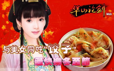 冬至大如年,饺子暖人心,冬至是我国农历中一个非常重要的节气,按照北方民间的传统,不论贫富,在冬至这天一定要吃饺子,否则耳朵会被寒冷的冬天冻掉。在《华山论剑》,有位叫鸳鸯的馋嘴小美女,正眼巴巴地盼着那热气腾腾的饺子呢!哪位怜香惜玉的大侠如果能喂她吃口饺子,就能得到少女亲自送出的神秘礼物!这正是《华山论剑》冬至活动的一部分,有美女,有美食,还有多重好礼送给你!