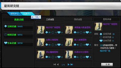 在研究院里,您可以投资资金,开发新建筑造型,获取图则,真正实现您的高级建筑建造梦想!