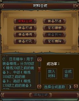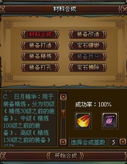 4、 材料合成时,每次成功,等级加一。失败的话,材料消失。最高等级的材料将无法进行合成。