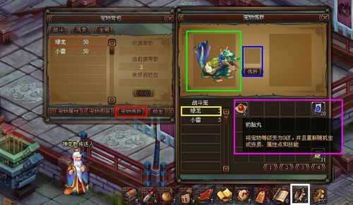 通过宠物洗髓过程可优化宠物的潜质和技能,新生的宠物通过精心的培养,会根据你个人的喜好蜕变成暴力型、血牛型、贤者型等等。