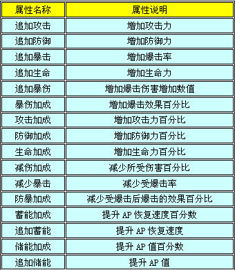 部件的追加属性会出现在3档以上的部件中,每个部件的追加属性都是随机的。追加属性包括: