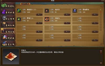豹 胎 丸:将宠物等级变为0级,并重新随机生成资质、属性点和技能,每次消耗1个。