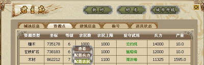 新增的居民是指被城池吸纳进民居的人,而只有这些居民才可以被培养为农民与士兵。唉,难怪刘玄德宁要子民不要儿子,原来是为了以后的霸业着想啊。玩家在游戏中可要广播贤德,让万民景仰,慕名投奔。千万不要过于激进,弄得自己城内的男丁战死沙场,内政建设,资源点采集都没人,更遑论军队的培养了。组建新军可不是一朝一夕的事啊。