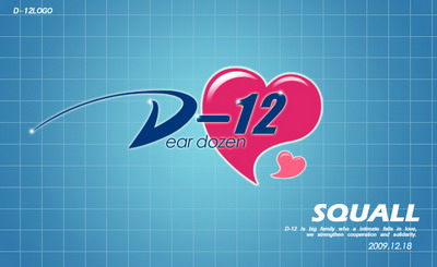 12个是一打~寓意希望在这里,人人都能拥有很多很多亲爱的朋友。会徽是以变形的字D12和2个爱心组成。象征着朋友们相亲相爱。粉色那张是女生版骚妞团的色系。蓝色的是男生版骚男团的色系。
