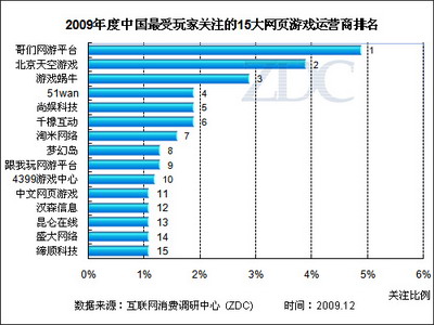 2009年度中国最受玩家关注的15大网页游戏运营商排名