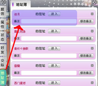 被定位后的人,在你的“个人”面板中的“通讯录”里可以找到,通过这里可以随意、随时进入对方的庭院,无论是偷花、贴广告、还是跳舞唱歌,都是轻而易举的事情,不再为来回寻找庭院而烦恼了。而且会让对方防不胜防,如果游戏中遇到你的死敌,可以用这个办法哦。