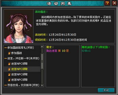 3、梦幻迷宫寻找珍珠时间: 12月30日19:00-24:00