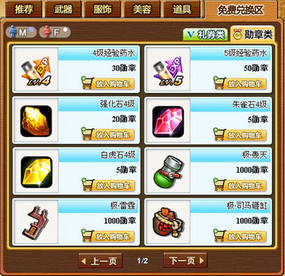 新增的免费货币——勋章,可以通过任务和其它形式(如击杀BOSS等)获取。勋章与乔尼币一样,属于游戏内的珍稀货币。其价值之高,让其可以兑换游戏内的大量珍稀物品。如各级经验药水、4级强化石,各种4级圣兽石,还能兑换极武器哦!(见上图示例)