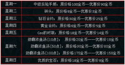 商城新增折扣区:一周7天,每天都有不同的热销道具!