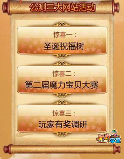而三大网站活动也是非常精彩的哦。为了让各位玩家能够在无忧大陆体验到更多乐趣,魔力一直在不断地改进自己,而这次的网站玩家有奖调研活动便是为了感谢大家对魔力的一贯支持。