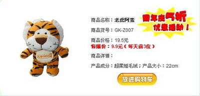 购买老虎阿蛮打5折,购买其他网娃系列产品一律打8折