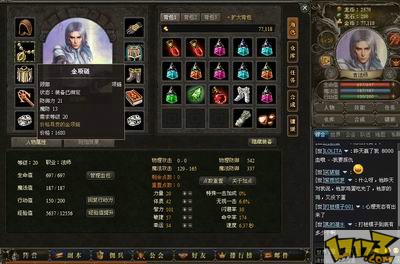 游戏中人物界面整合了很多功能常用的指令都可以在这里看到,分别是角色,仓库,任务,合成,镶嵌,以上的栏目都是可以随时调用不需要去特定的地点。