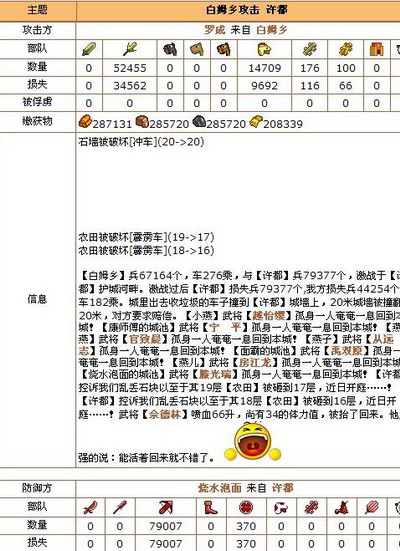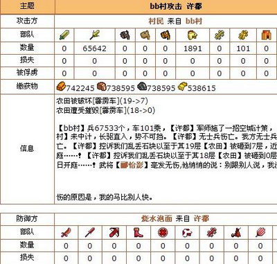 原来,帖子的内容很简单。某位玩家因私事即将离开《新网三》,在走之前想给敌对盟一个打击,用游戏术语说就是“用兵撞墙”。没想到敌对盟轻于防备,不但守城的兵被全灭,建筑也被车了不少。