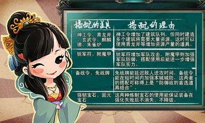 作为一名新晋君主,你想要你的城池固若金汤,也想要拥有一支无坚不摧的军队,还想要仓粟殷实,人民知礼识仪……然而时时短缺的资源,缓慢的练兵速度,频繁的外敌侵扰让你不胜其烦。虽然有很多道具可以助你一臂之力,但是如果合理使用道具,将其效用发挥到最大化,就让战国风云最可爱小侍女为你娓娓道来。