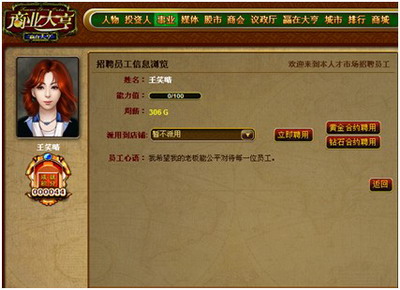 C能力值:这个属性也很重要,当它到50的时候可以任命为店长,有5%收入加成。随着能力值的提升,员工的级别也有所提升,职位的提升也是影响它所在店铺收入的一个标准。