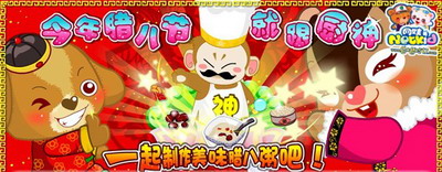 制作腊八粥也不是那么简单的哦,要帮助厨神搜集制作腊八粥的材料:大米、糯米、小米、米仁、花生、红豆、红枣、木耳。然后交给厨神,他就会为你烹制美味的腊八粥啦~