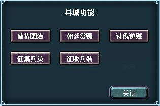 当成功占领后,在城池附属里面就会出现上述的图片。恭喜您,县城已经在您的手中了!点击查看,您就会发现新的县城功能,如下图所示。