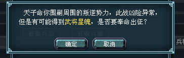 占领县城后,可以使用此功能进入一个配置战场,在此战场中获得胜利后,有几率获得武将星魄,点击讨伐逆贼的按钮后,弹出下面的界面。