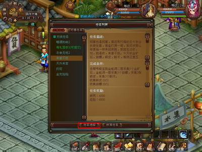 如果玩家接到的任务需要清理一定数量的野怪,或者收集一定数量的任务物品,那么点击黄色的任务提示会出现一个下拉菜单,这样您就可以十分直观的了解到任务的完成情况,从而正确的决定下一步的行动。如果所追踪的任务已经完成,那么该任务提示会在括弧中出现“可提交”三个字,这就表示您可以回城交任务啦。