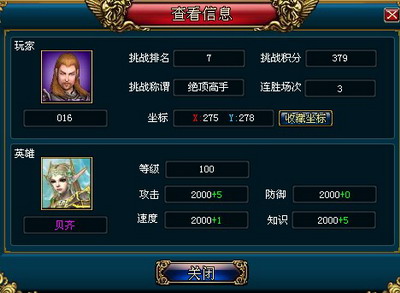 注:在对手信息中,仅显示名称等级,挑战排名及积分,不显示兵力及英雄属性。