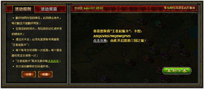 将卡密复制到个人中心兑换处,便可以获得这次游戏的胜利宝物--酱油“礼包”。武装你的将领,强化的军队,向着单区的统一王者的坐骑,向着全新面貌的跨服战场第二赛季预备起航吧!
