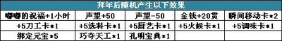 5、 特别说明:除厨师改名、饭庄改名、厨师洗点、菜谱洗点外,其余兑换物品均为绑定状态。