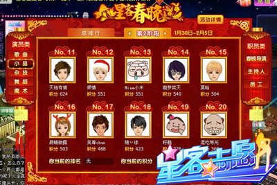 Mia@小米:《星客志愿》除夕晚会活动嘛,就是给别人大量的使用诋毁卡…… 不然我们排名不上不下的就没意思了。希望下次弄个不花钱的活动给我们玩玩吧= =!