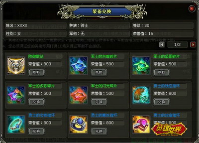 荣誉装备是荣誉和身份的象征,只有拥有至高无上的荣誉和显赫军衔的玩家才可以成为荣誉装备的主人。除了高贵的出身,荣誉装备还有着与众不同的神奇属性哦!荣誉装备有别人普通装备,它是根据每个职业的英雄特色进行了区分,量身定做的职业英雄的专属的装备。专属的荣誉装备更突显了每个职业的英雄特色,战士的超强攻击,骑士的深厚防御,法师的强大魔法,牧师的神奇治疗能力,各有所长,淋漓尽致!