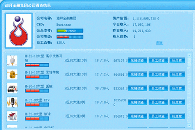 董事长身份并不意味你只能通过亲自经营才能盈利,选择投资让他人替自己赚钱也是不错的选择。成功投资后占有对方公司的股份,能够参与公司每月的股份分红。公司的效益越好,占有的股份比例越高,你所能获得的收益就越大。世界上最赚钱的是什么生意?是投资!《大富豪》为你提供了自由投资的舞台,在这里你可以充分施展自己的商业才能,成为游戏中的投资大腕!
