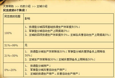 作为帮助系统中最有特色的内政系统,是你不出家门而知天下事的通道。内政包括了城池科技水平、民忠度、城池防御力、繁荣度、建造/升级建筑、拆除/修复建筑、建筑被破坏、将领在建筑方面的作用、城池装饰、装饰建筑拆除、装饰建筑获取、建造分城、分城与主城关系、分城销毁、分城的升级等等内容。