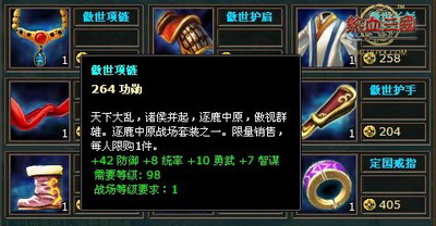 《热血三国》强悍跨服武装--傲世套装:以强悍的的全能战斗属性而著称于世,但高昂的战功价格也曾令很多玩家只能梦寐以求,却不曾拥有!
