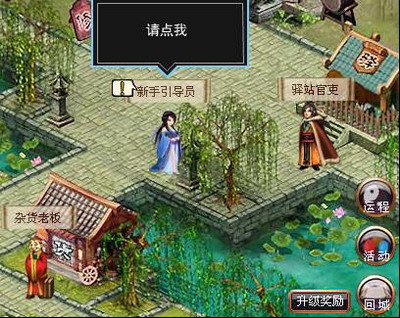游戏中的操作属于“鼠标走天下”的模式,辅之以键盘操作,可以通过点击目标进行移动。新进入游戏的玩家建议使用鼠标左键点击NPC 【新手引导员】接取新手任务,按照任务提示进行游戏,将会得到游戏初期的全套装备及各种必备游戏道具,可以帮助您顺利渡过新手阶段,成长为一代大侠。