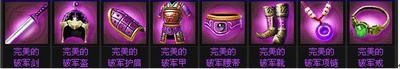 破军全套:破军剑、破军盔、破军甲、破军靴、破军项链、破军护肩、破军腰带、破军戒