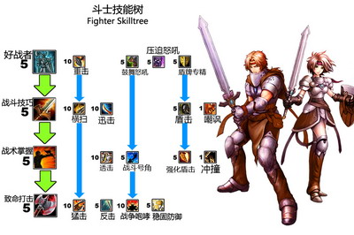 玩家在游戏一开始将会是初心者,当等级达到5级时可进行第一次转职,可转职业分别为:斗士、游侠、巫师、僧侣。与此同时,相应职业技能树将会出现,玩家可以自由分配技能点数,不过可分配点数有限,所以在加点之前须慎重考虑。