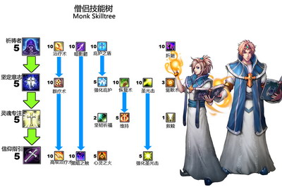僧侣:常规治疗职业,但也具备一些普通的攻击性法术。可转职为进一步强化治疗能力的圣光祭司,或偏好法系输出的暗影祭司。
