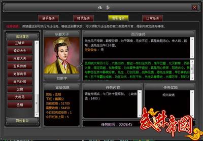 《武林帝国》官职任务包括近千个故事,有的幽默、有的机智、有的竟包含着丰富的人生哲理,从侧面揭示人生的各种感怀。不知道开发商请来了哪位文案人员,也可能是从热心玩家之间暗中寻找的,因为这样古典华夏文化学养深厚的人员,游戏圈内并不多见。他似乎存心显现自己的功底一般,把华夏五千年的人情世故揉和在一起,不仅有佛家、道家、儒家三家认知的激烈冲突,甚至现代的拆迁、佛学商业化、各种选秀也能天衣无缝的化用到各种剧情中,组成一条丰满、复杂的人生道路。