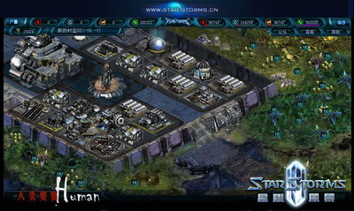 而游戏主控界面区有两个主要场景界面:基地界面、行星地图; 在这两个主要场景界面内包含了《星际风暴》的军事、内政、外交、探险、贸易等主要控制功能操作。直接点击界面内的建筑和图标就可以执行相应的游戏功能。