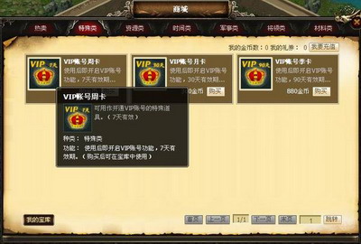 在特殊类道具中,主要是用作开通VIP账号的特殊道具。依时间段有别,分别为VIP账号周卡、VIP账号月卡和VIP账号季卡。当玩家使用后就可开启高级帐号功能,尊享更多与众不同的贵宾礼遇。