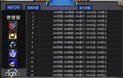 在遗迹星上布满了各种级别的遗迹基地,这些几乎无人防守废墟基地中蕴藏着坚刚、核能、基石、水晶、星尘5种资源。每日按时完成任务还可以再获得1000坚刚、10个喇叭的奖励。