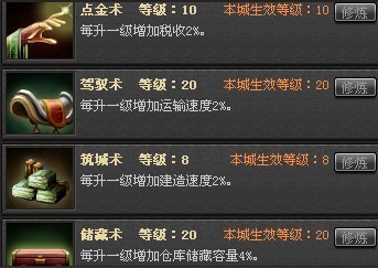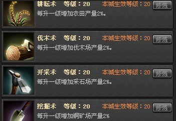 最后再说一点要注意的就是,当你建造分城的时候,科技能力并不立即可以给你带来实惠。而是需要你将分城的修仙院等级提升才会获益,这点请大家注意!